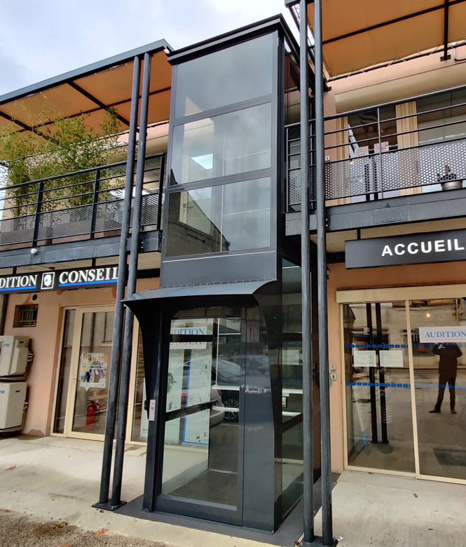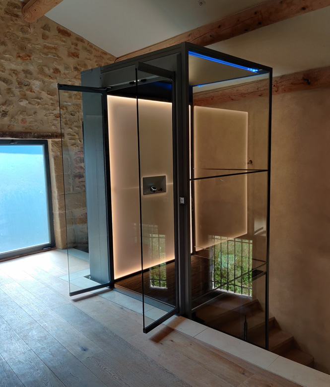 Installation d’un ascenseur privatif vitré à APT dans le Vaucluse.