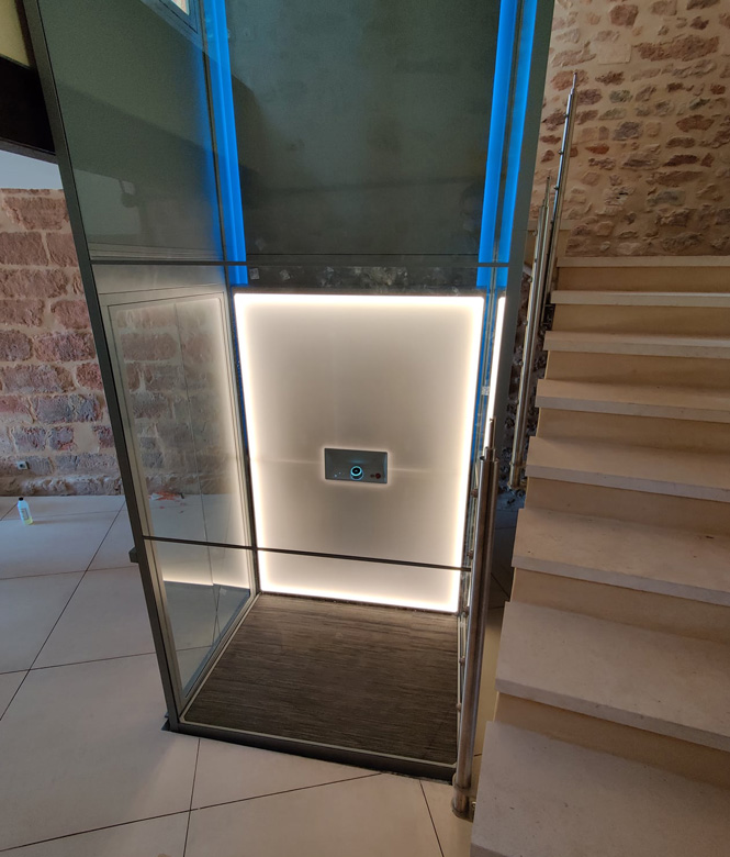 Votre ascenseur privatif est un élément de design à part entière qui apporte une touche esthétique supplémentaire à votre maison. Il peut être équipé de boutons en braille, main courante, téléphone, etc.